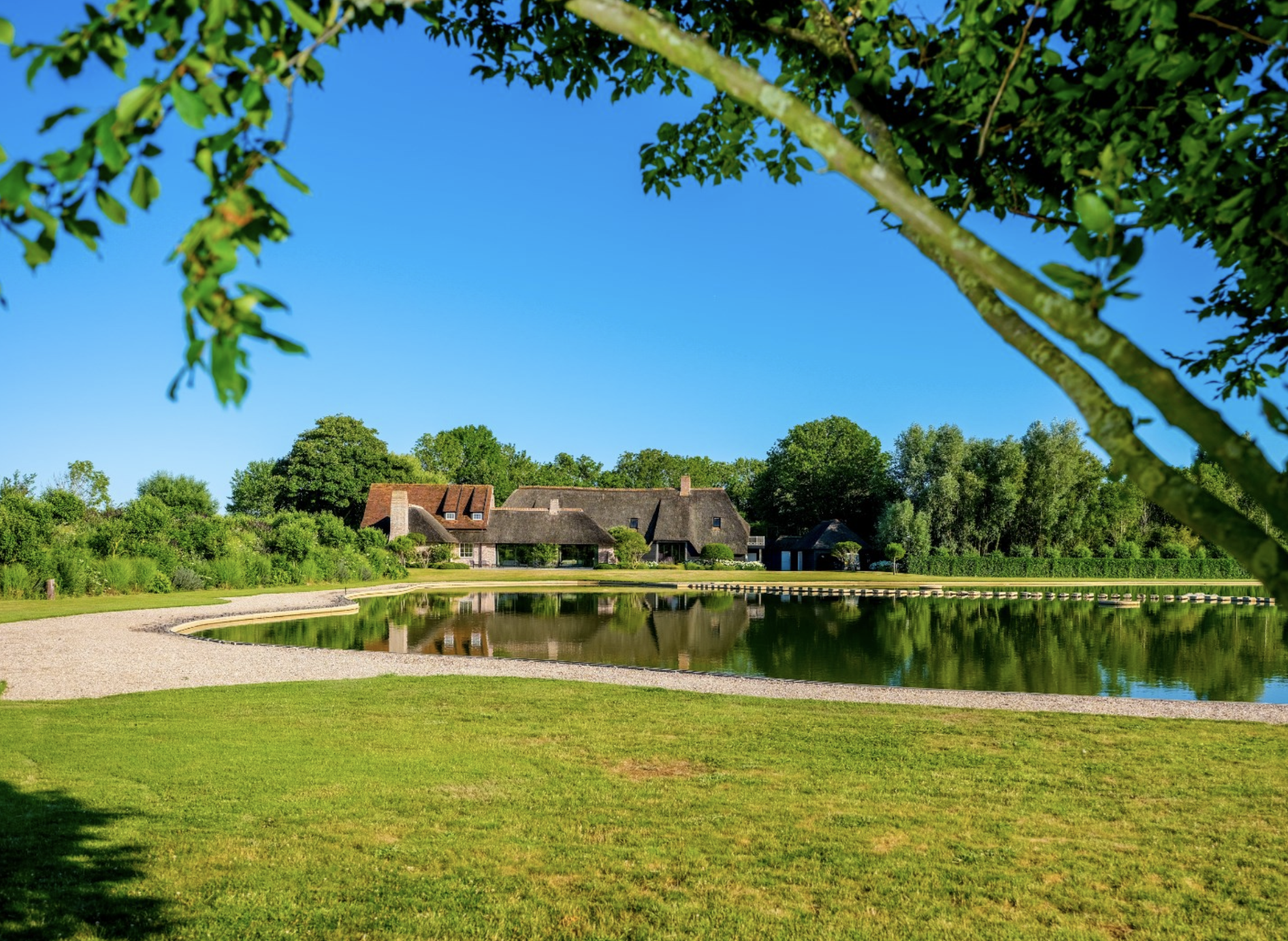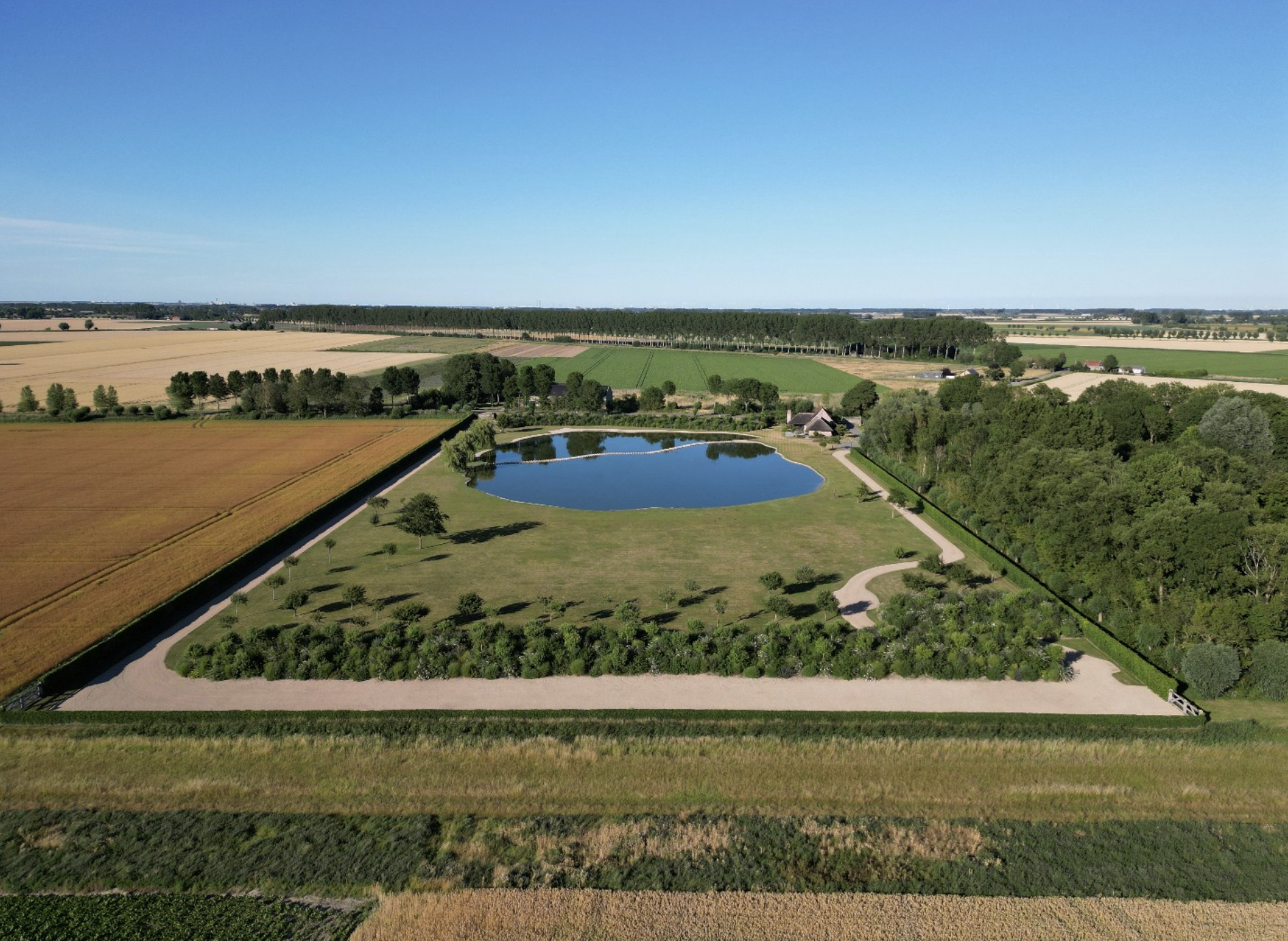 Centraal op het domein ligt een prachtig kunstmatig aangelegd meer dat een sereen karakter aan het landschap geeft. Het meer vormt het kloppend hart van de omgeving en weerspiegelt de rust, ruimte en schoonheid van dit bijzondere eigendom.